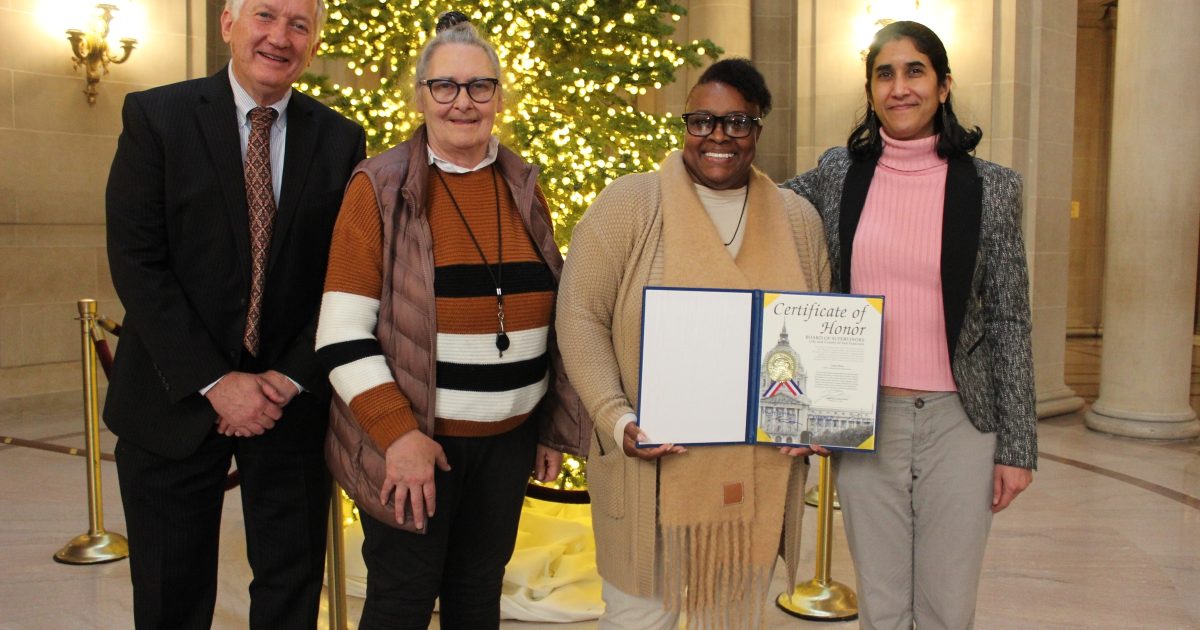 Supervisor Jackie Fielder presents our Cameo House program with a certificate of honor for its critical work with San Francisco’s justice-involved women and children.
